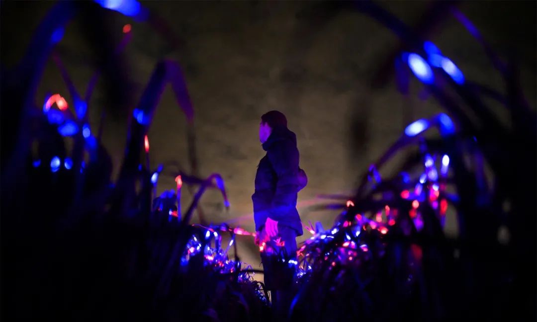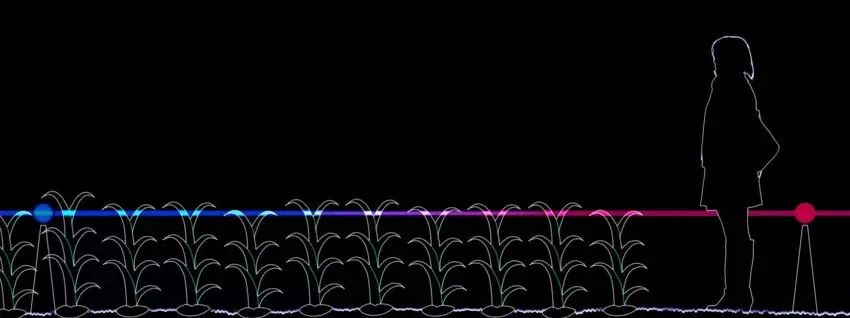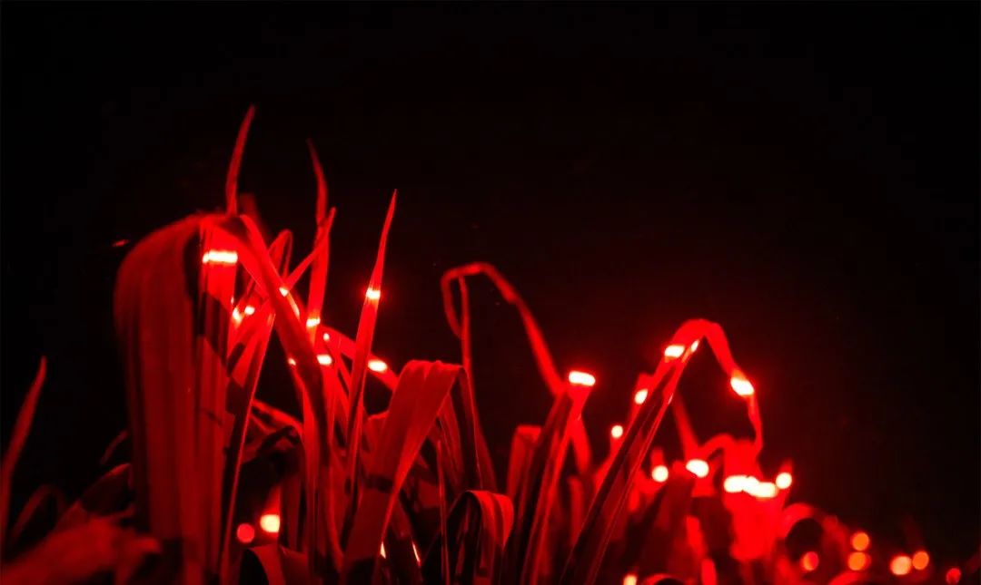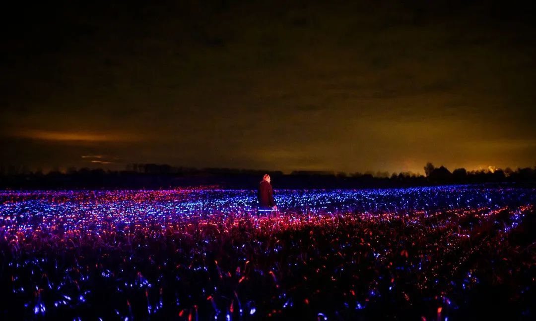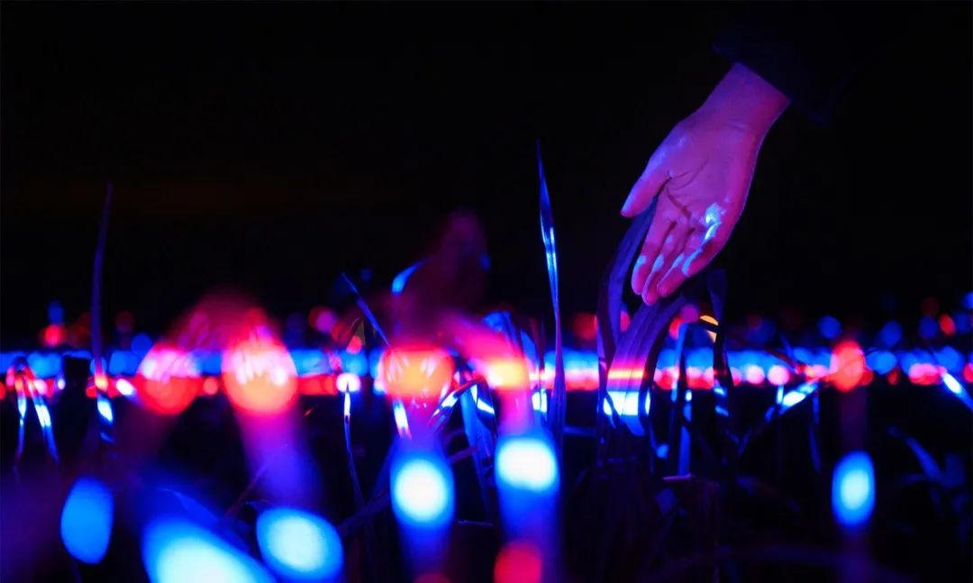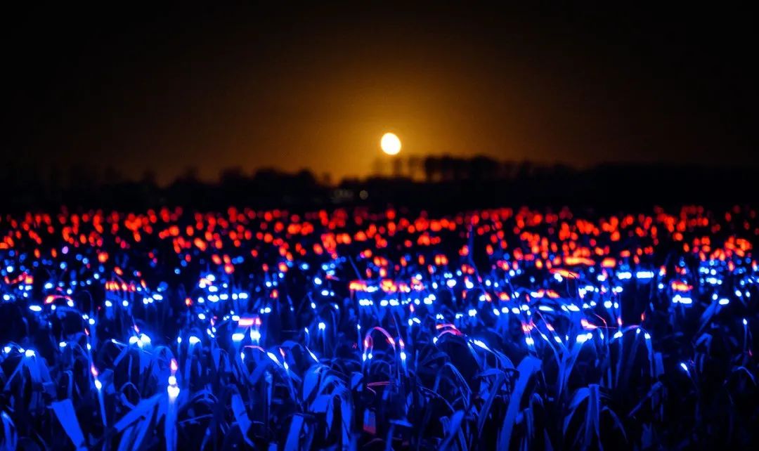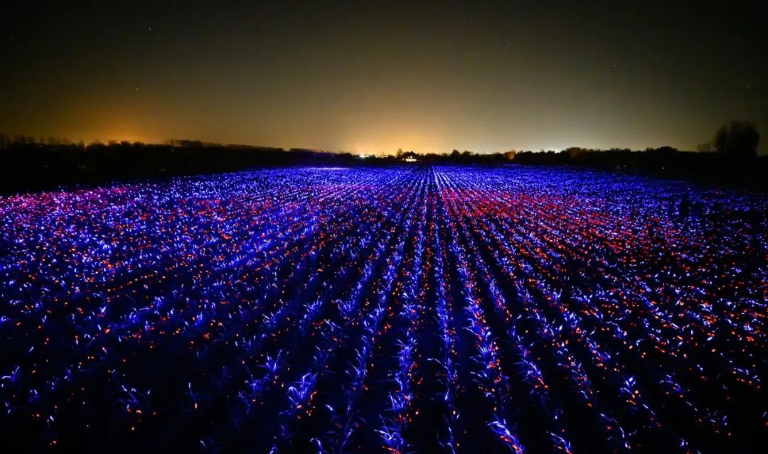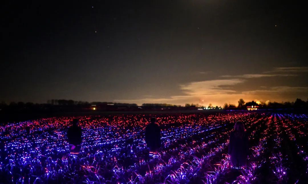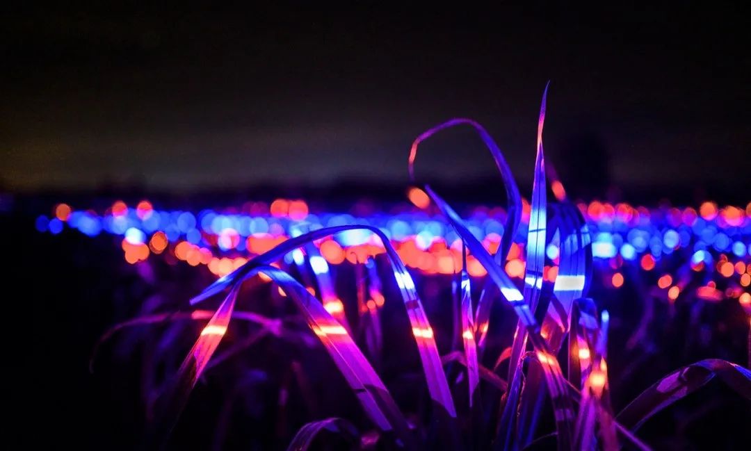 通過照明藝術,紅色、藍色和紫色的燈光被編排成了奇幻交響曲,將鄉村中再常見不過的農田變成了發光的夢境。