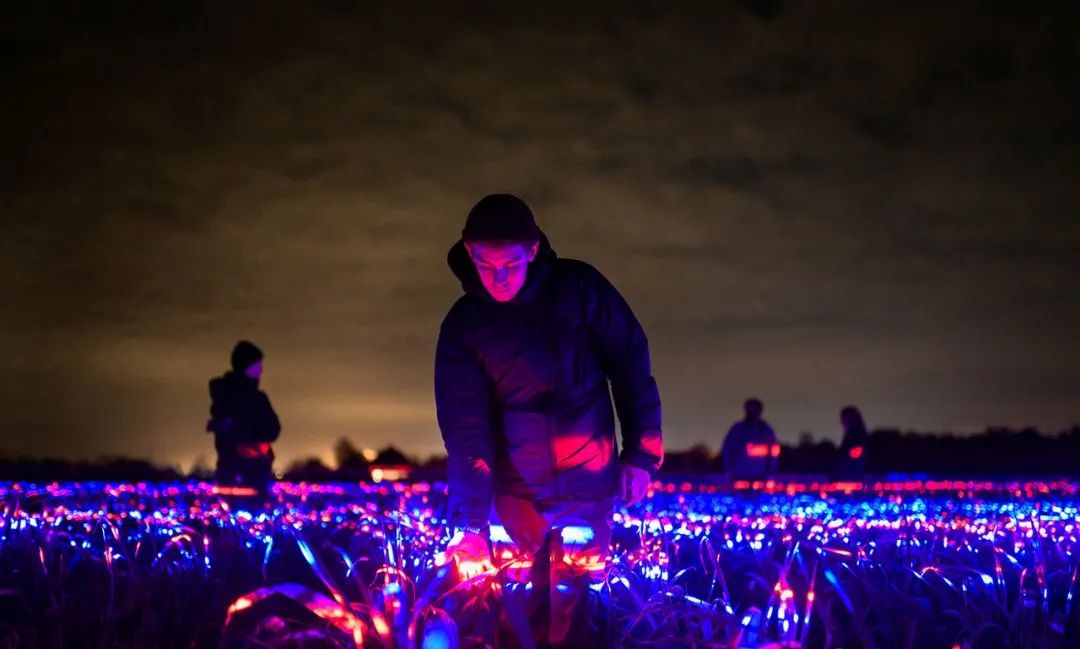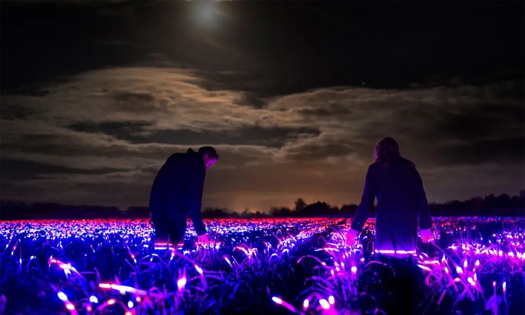 藝術燈光裝置:農田變成了發光的夢境