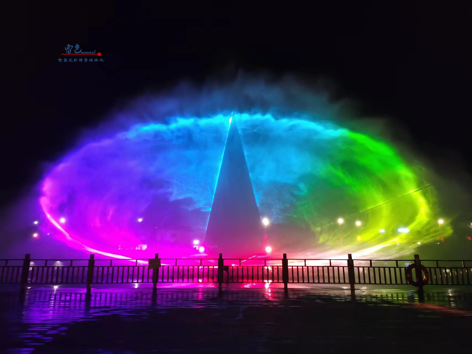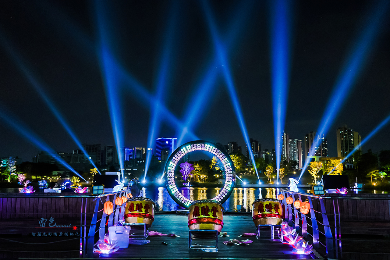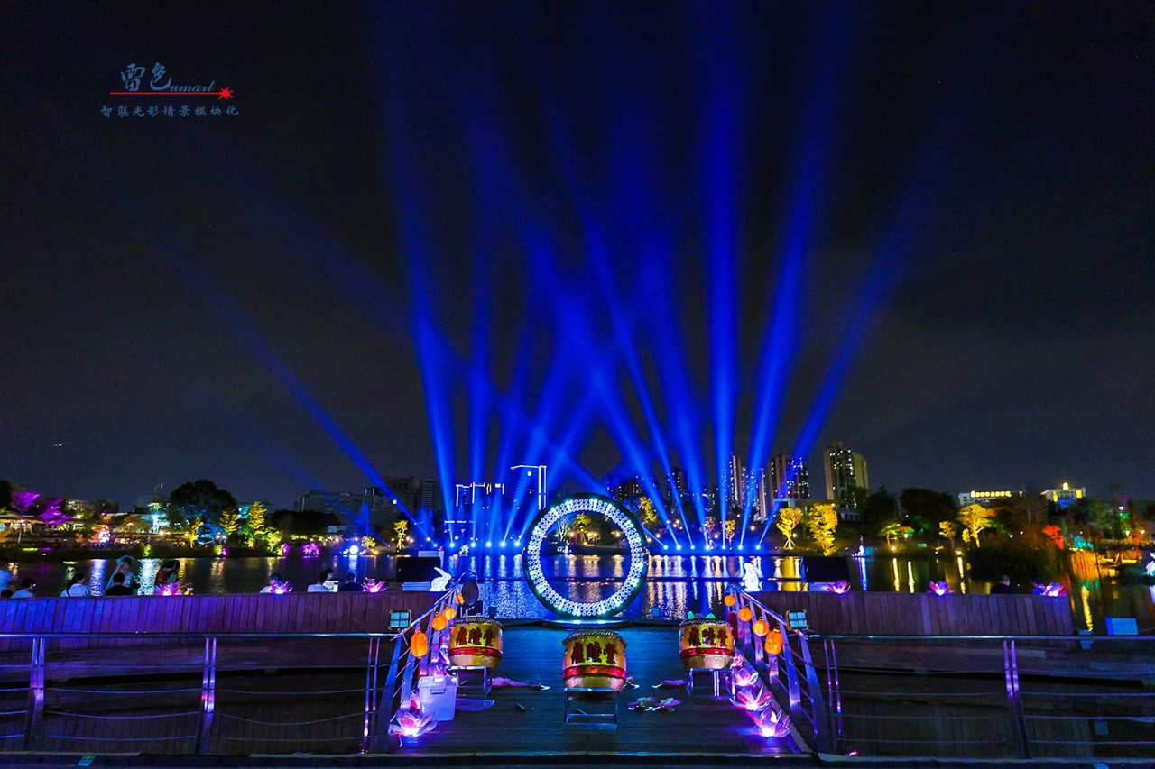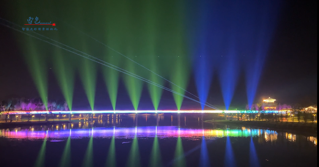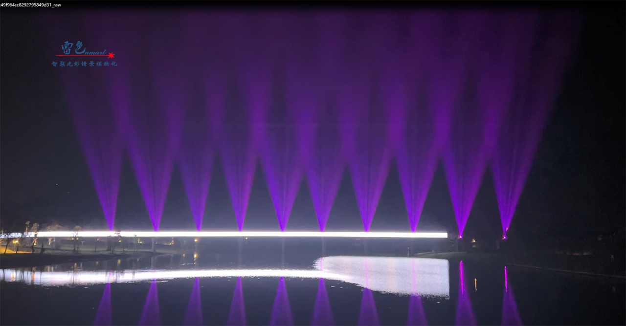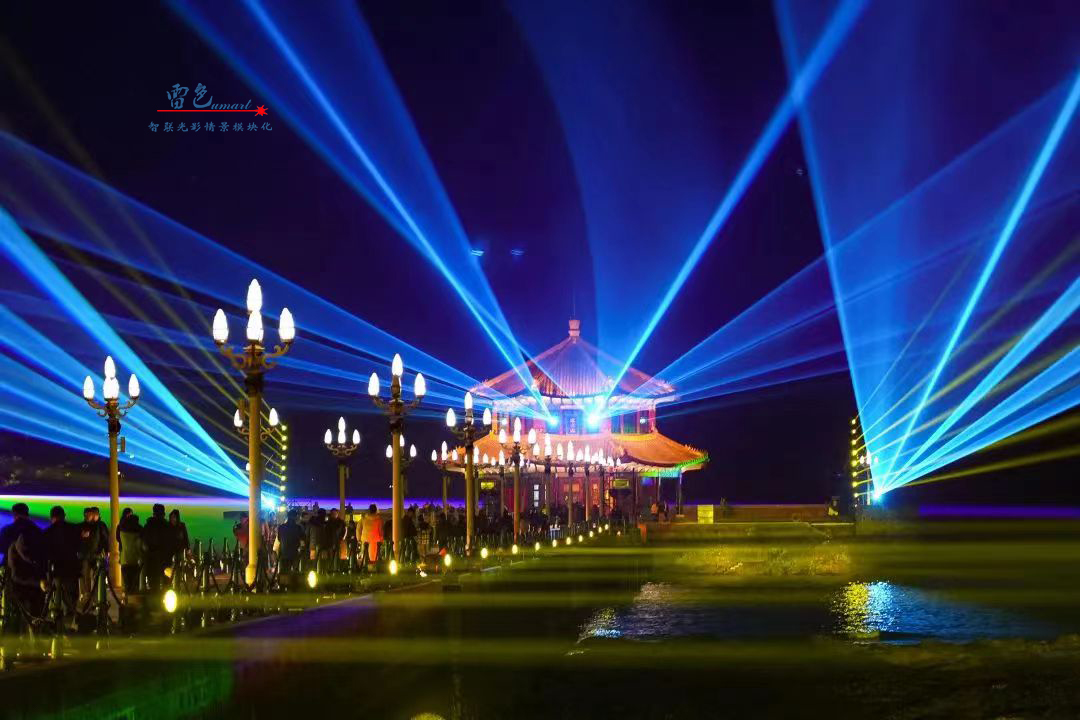 2、利用了彩色防水激光表演機等多種先進的燈光設備,通過精心設計和布置,打造出了璀璨奪目的燈光秀。這些燈光設備不僅顏色豐富、變化多樣,能夠營造出多種形態變換的燈光效果。