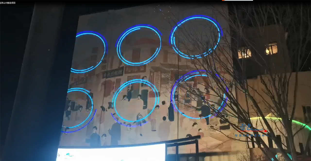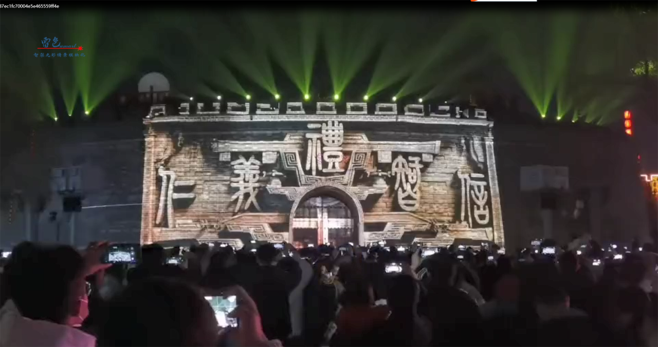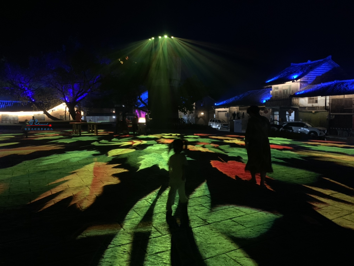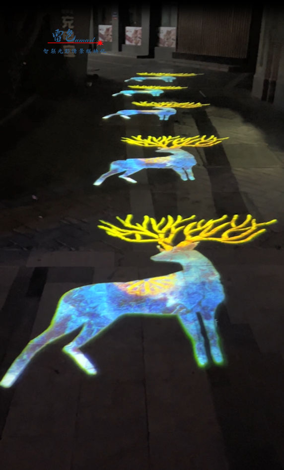 2、嵊州市攜手我們雷色光電進行了合作,項目中使用了多種設備,包括智聯視頻投影燈和LED圖案投影燈等。這些設備具有色彩柔和、顏色純正、圖像仿真度高等特點,可以實現動態3D圖案視頻的播放和互動,為游客帶來深刻的體驗。