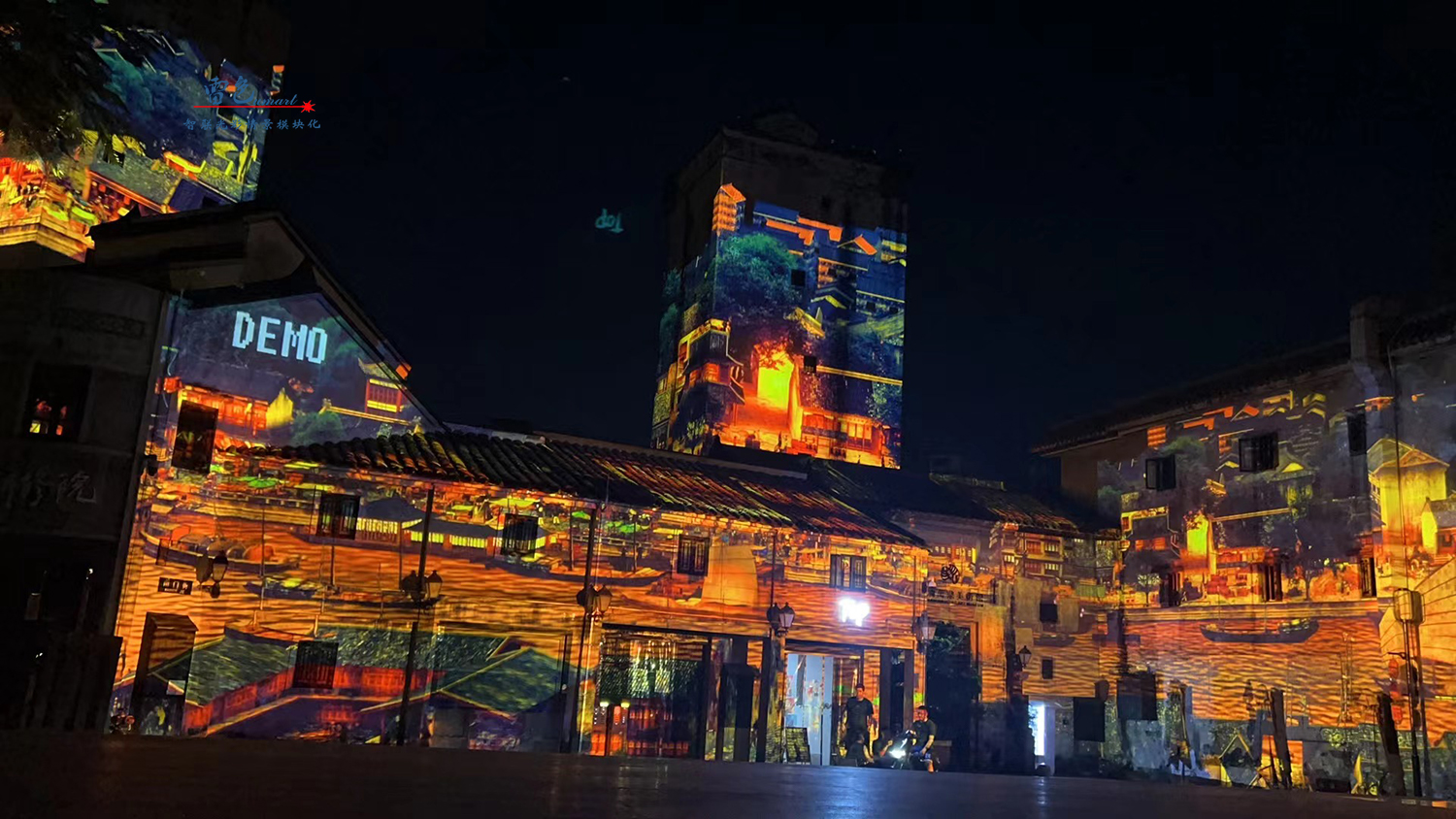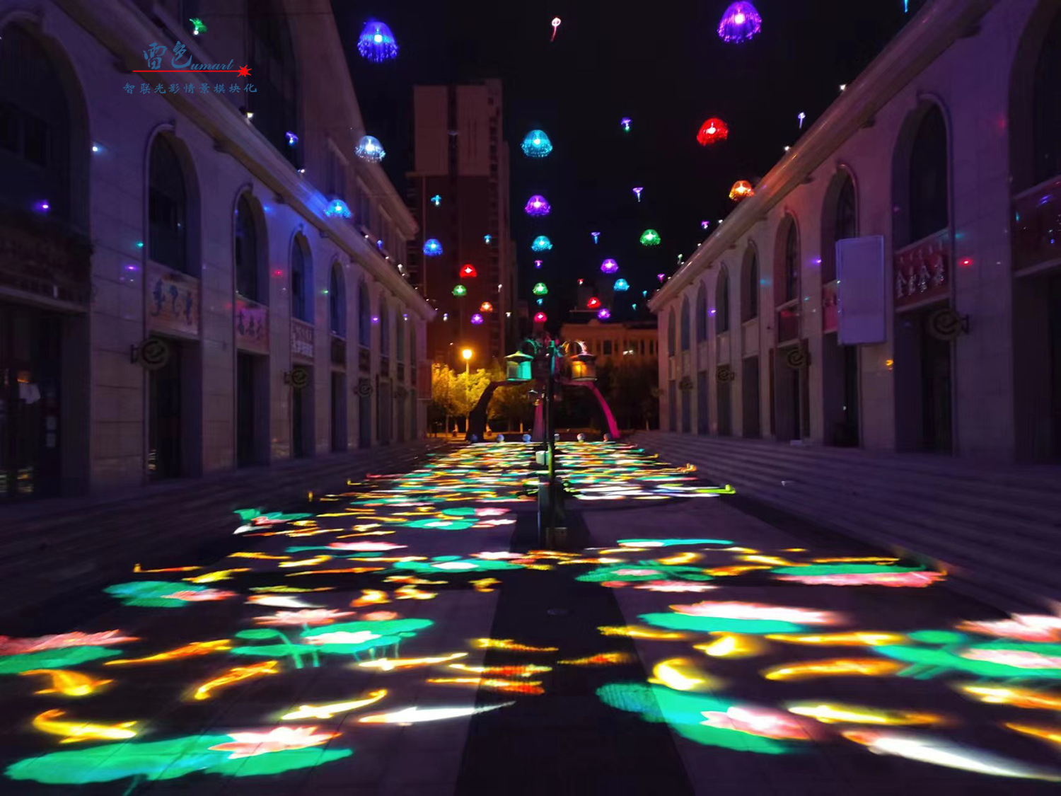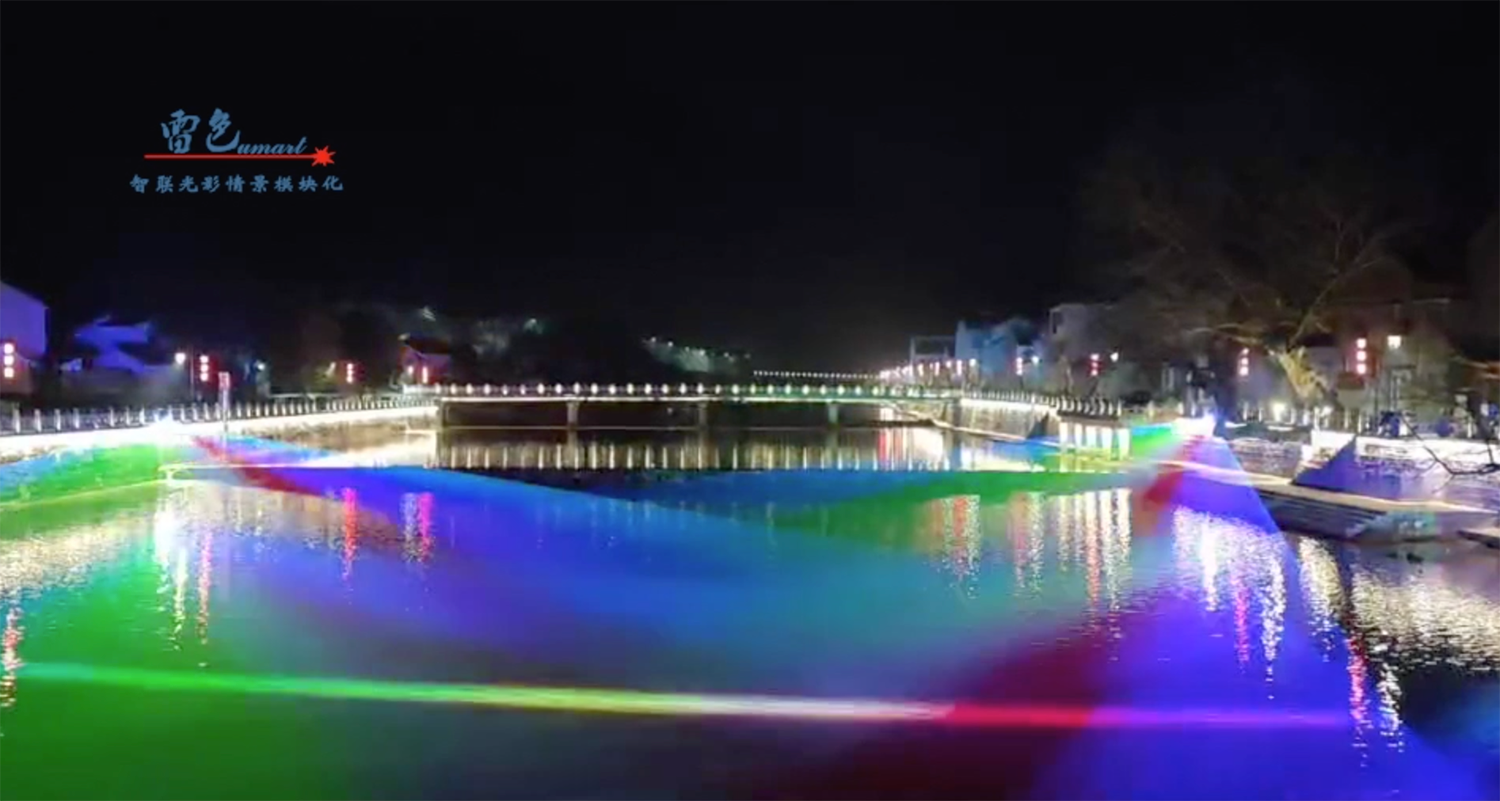 2、嵊州市攜手我們雷色光電進行了合作,項目中使用了多種設備,包括智聯視頻投影燈和LED圖案投影燈等。這些設備具有色彩柔和、顏色純正、圖像仿真度高等特點,可以實現動態3D圖案視頻的播放和互動,為游客帶來深刻的體驗。