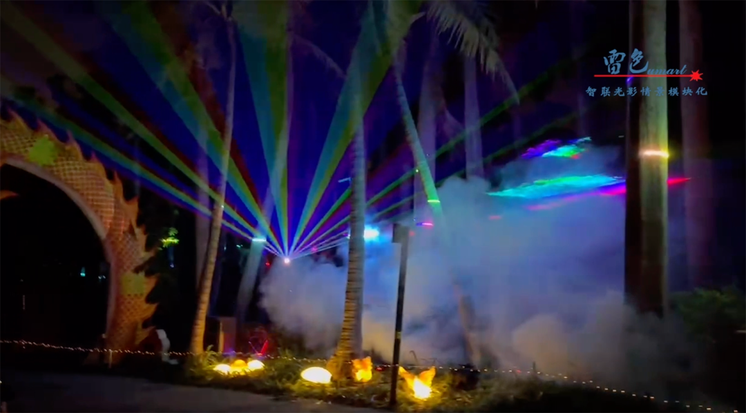 2、雷色利用光束燈,讓光線成為藝術的畫筆,描繪出絢麗的畫卷,吸引著游人的目光。